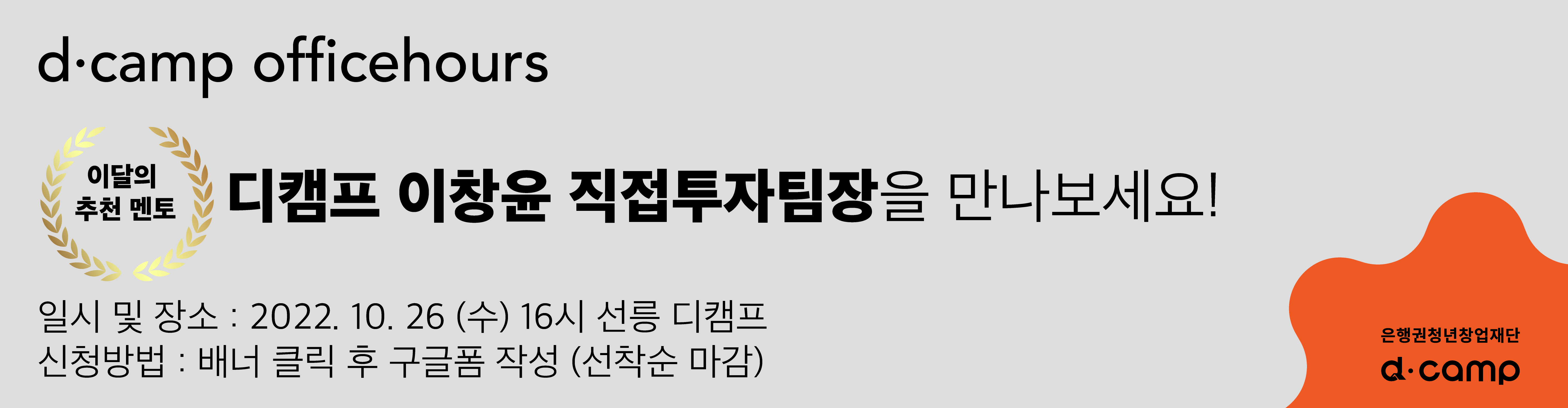 특별멘토링 참여자(15인)는 선착순으로 선발합니다. 아래 배너를 클릭하여 신청해 주세요