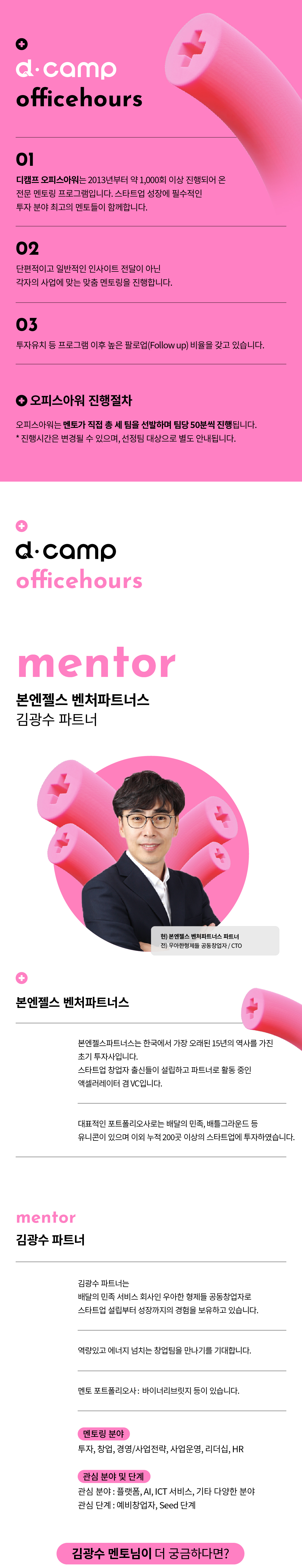 [3/28(목)│선릉] d·camp officehours with 본엔젤스 벤처파트너스 김광수 파트너