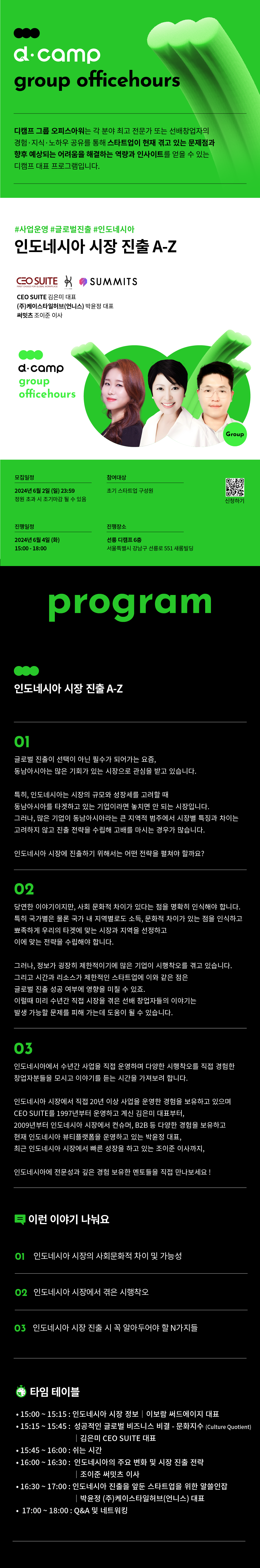 [6/4 (화)│선릉] d·camp officehours (group) : 인도네시아 시장 진출 A-Z